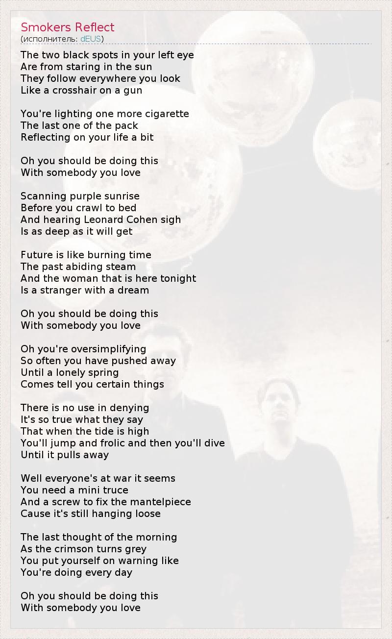 А как ты думаешь, о чем песня "Smokers Reflect" ?