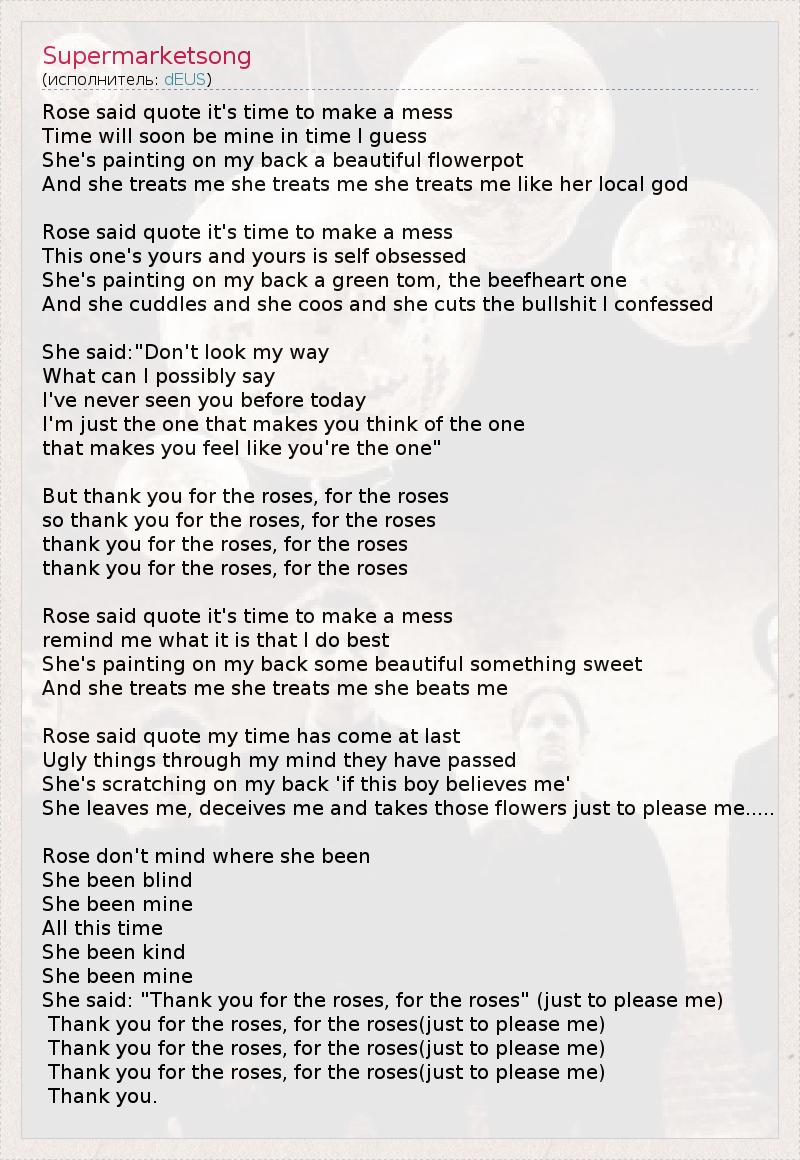 Thank you for the roses, for the roses(just to please me)