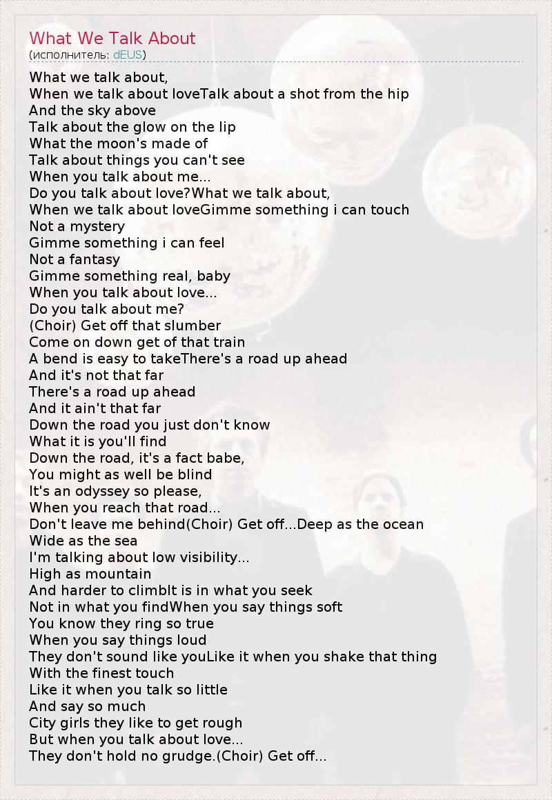 А как ты думаешь, о чем песня "What We Talk About" ?