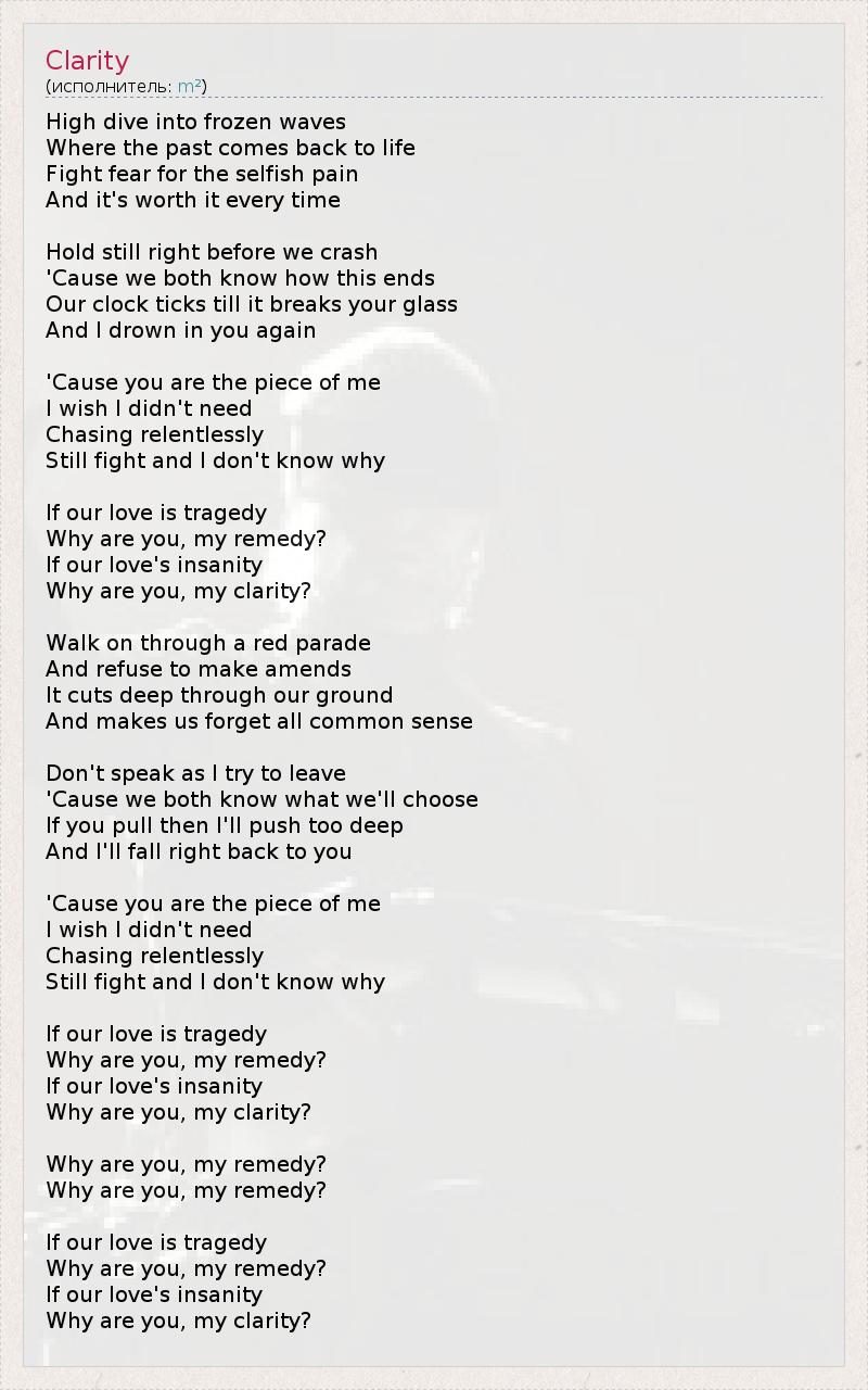 Why are you, my clarity?