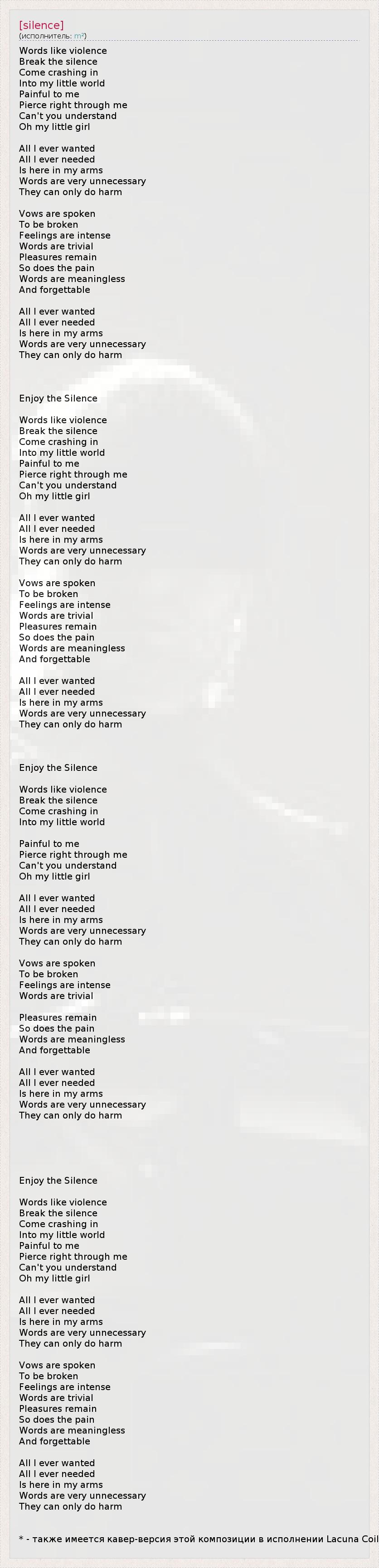 Наслаждайся тишиной (перевод Натальи Павловны из С-Петербурга)