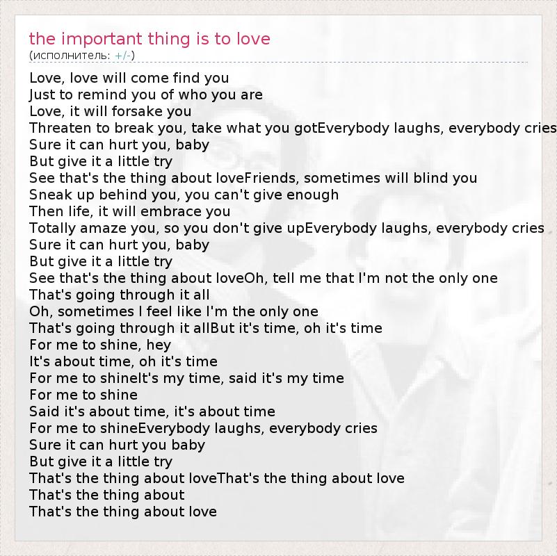 А как ты думаешь, о чем песня "the important thing is to love" ?