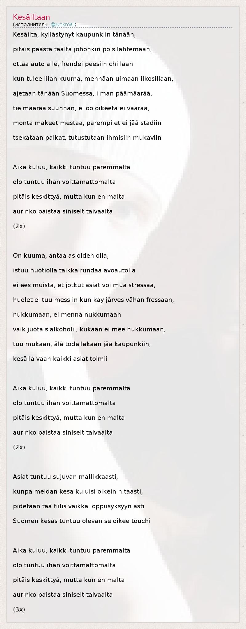 А как ты думаешь, о чем песня "Kesäiltaan" ?