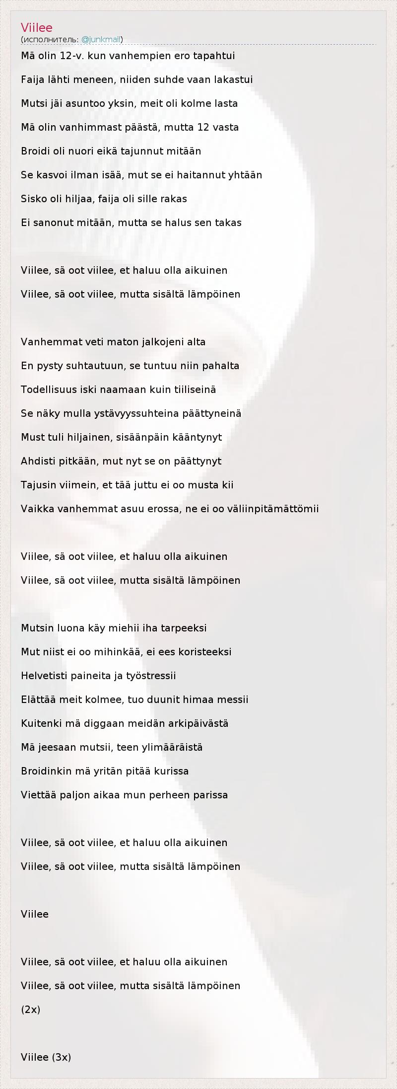 Viilee, sä oot viilee, mutta sisältä lämpöinen