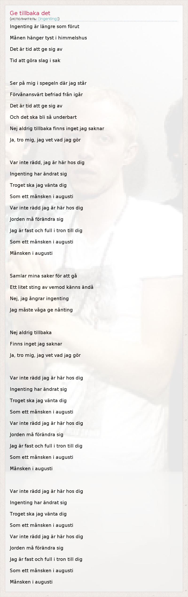 А как ты думаешь, о чем песня "Ge tillbaka det" ?