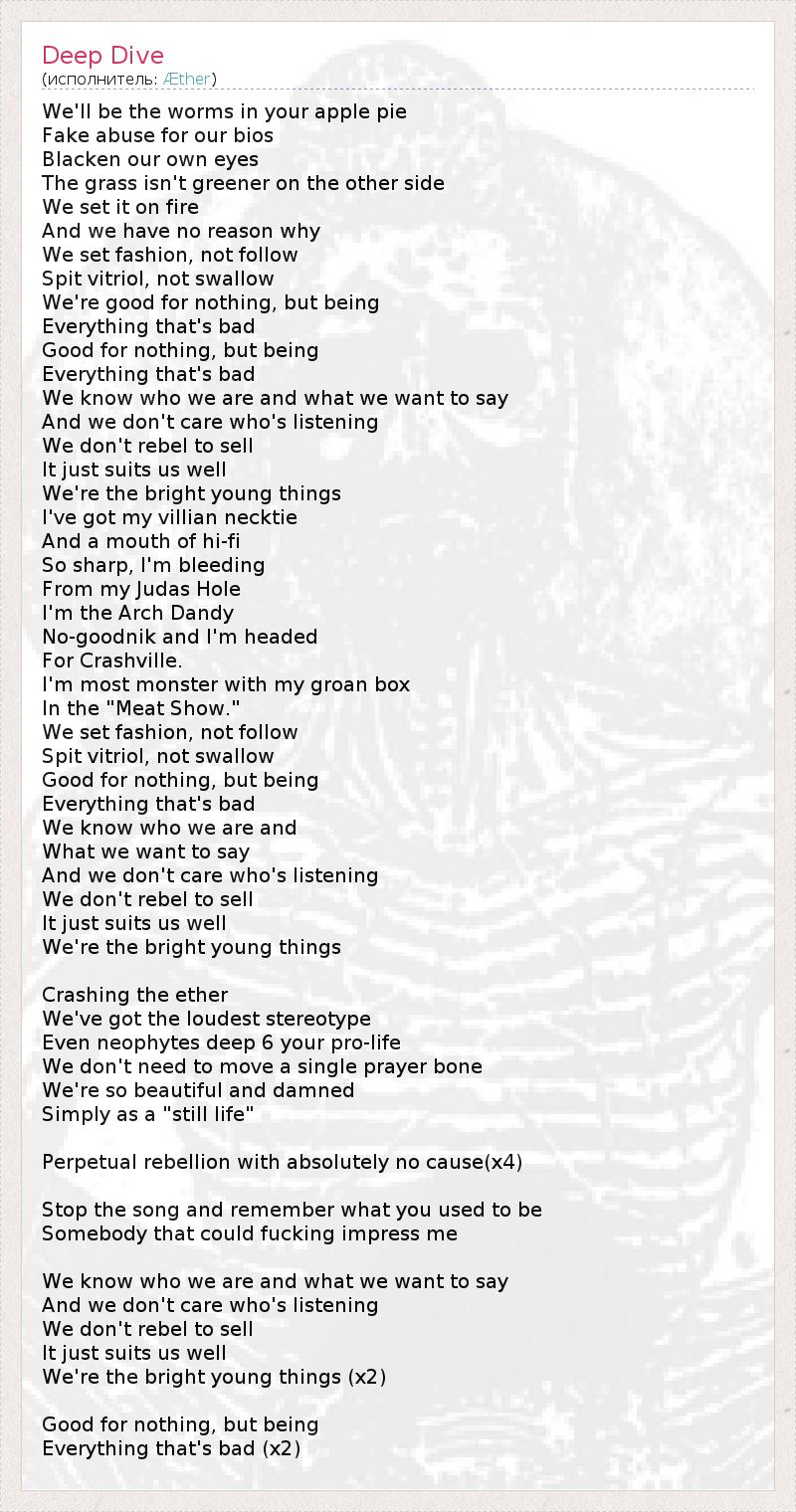 А как ты думаешь, о чем песня "Deep Dive" ?