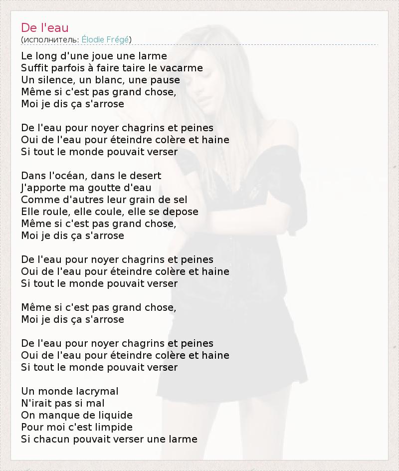 Это интересно:Элоди Фреже (фр. — Élodie Frégé) родилась 15 февраля 1982 года по Cosne Sur Loire. Она начала очень рано учиться музыке. Её дед — профессиональный баянист. Но, как напомнила его родителей выезд, Элоди была танцовщицей, по сути, от 5 лет, она приняла танцевальные уроки, и несколько лет спустя, она присоединилась к танцевальной школы. В возрасте 8 она называет гитары к ее родителям, она участвовала занятия... продолжение