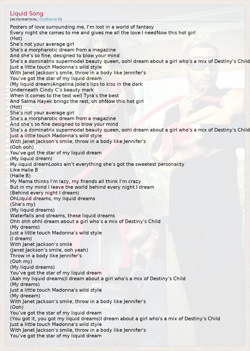 (Aah my liquid dreams)I dream about a girl who's a mix of Destiny's Child