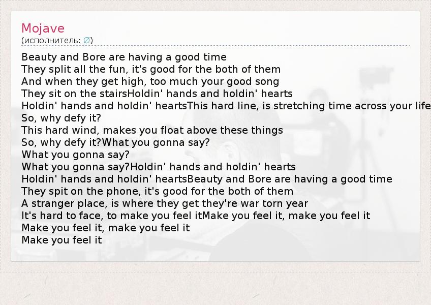 А как ты думаешь, о чем песня "Mojave" ?