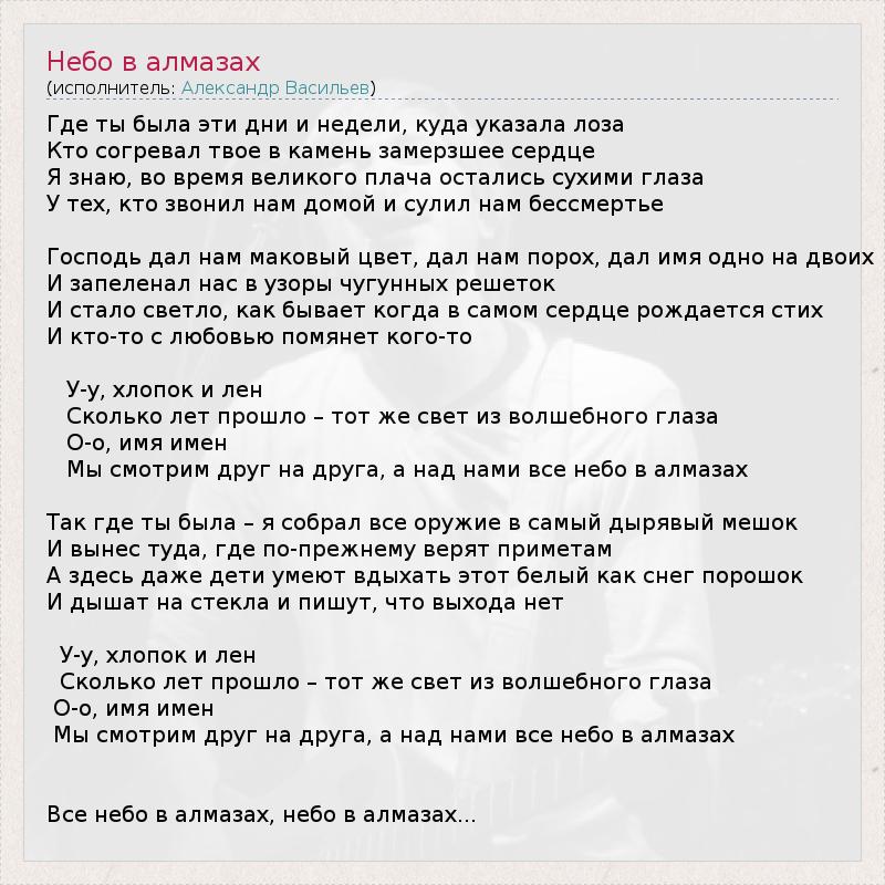 А как ты думаешь, о чем песня "Небо в алмазах" ?