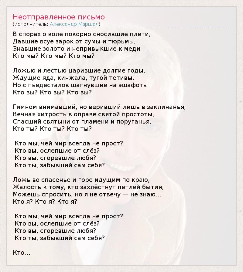 ГлавнаяИсполнителиАлександр МаршалНеотправленное письмо