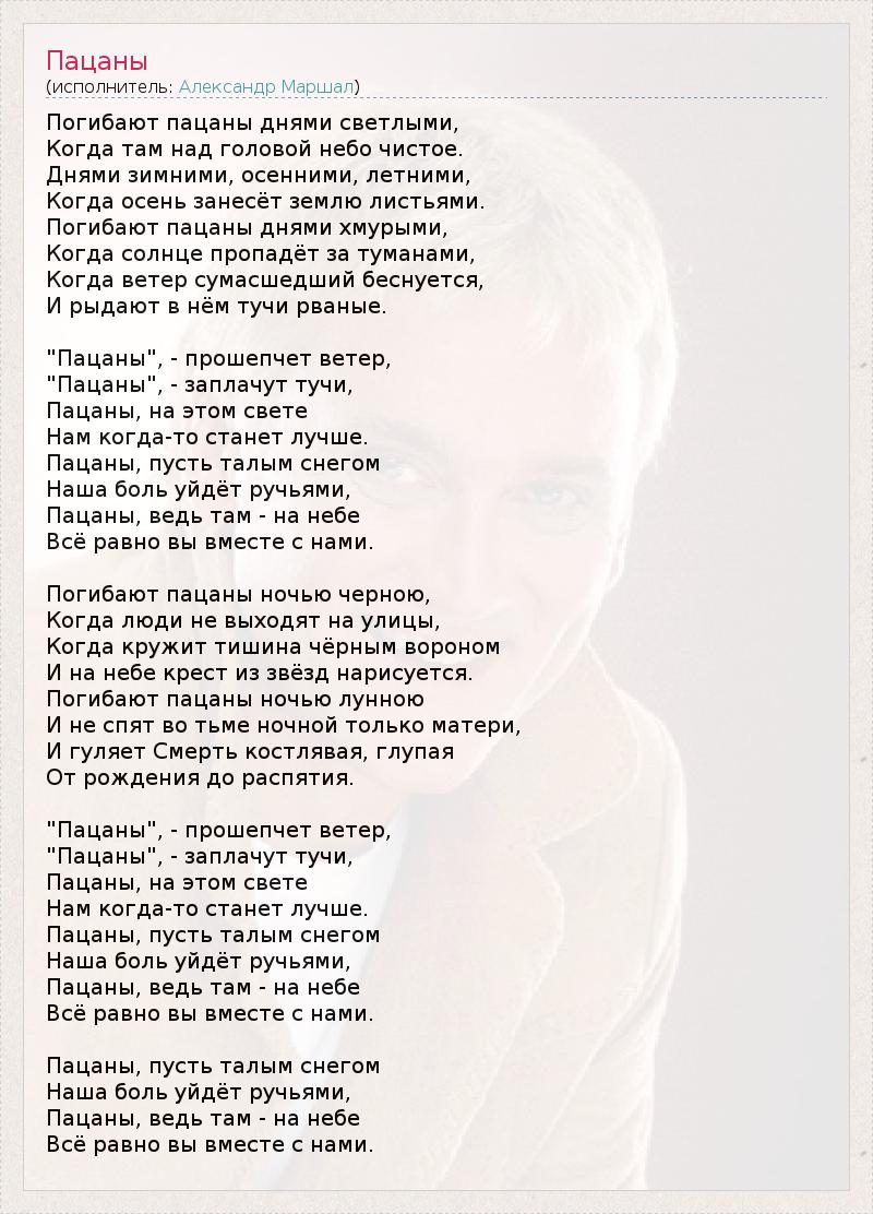 Это интересно:Александр Маршал - по паспорту Александр Витальевич Миньков - родился 7 июня 1957 г. в городе Кореновске Краснодарского края. В начале 80-х годов переехал в Москву, где вскоре начал сотрудничать с продюсером Стасом Наминым. В 1987-м году переходит в российскую рок-группу "Парк Горького", меняя на позиции вокалиста Николая Носкова, и переезжает вместе с ней в США. В конце 1998-го покидает... продолжение