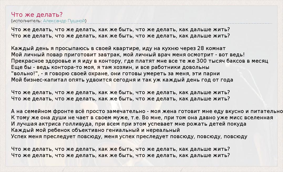 А как ты думаешь, о чем песня "Что же делать?" ?