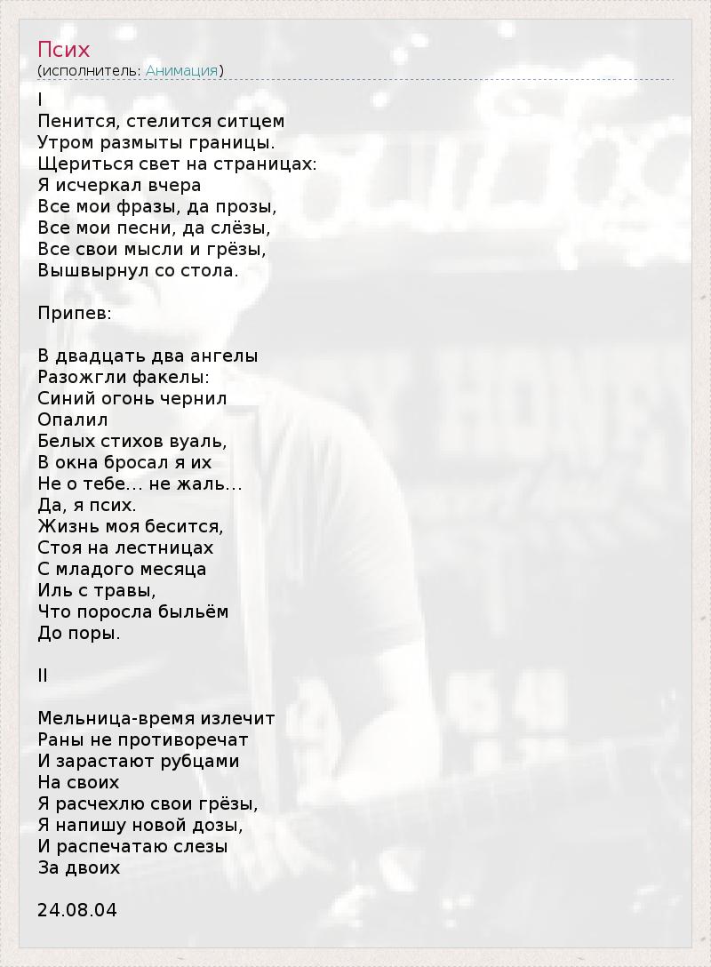Это интересно:«АнимациЯ - чистый рок из Чистополя»Группа «АнимациЯ», образовалась в городе Чистополь, который был известен всему миру своими часами «Восток». Время течёт, часового завода уже нет, а коллектив живёт и представляет Вам свою новую программу под названием «Время Ё». Эта работа приобрела черты того времени, в котором нам довелось её записывать, бурлящее, невыносимое, неоднородное, лёгкое... продолжение