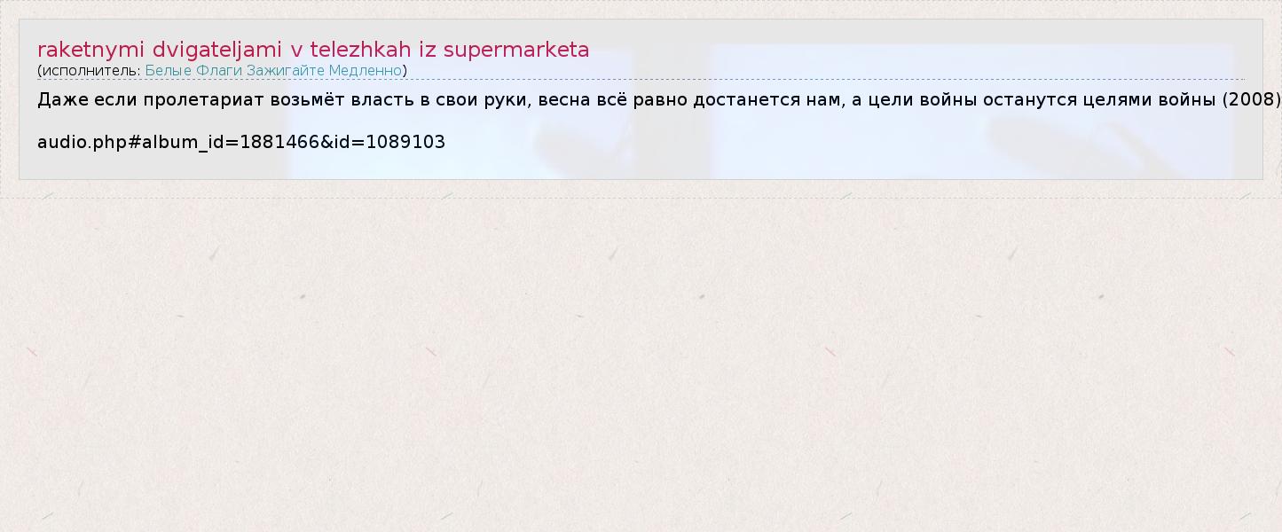А как ты думаешь, о чем песня "raketnymi dvigateljami v telezhkah iz supermarketa" ?