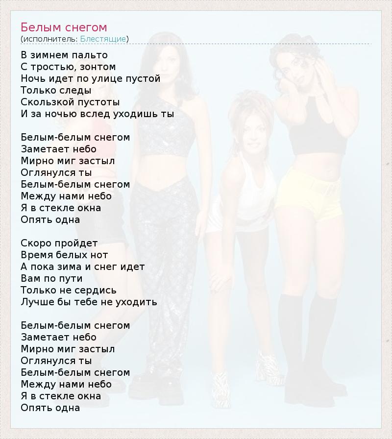 Это интересно:«Блестящие» — российская женская поп-группа. Образована в 1995 году. Продюсеры: Андрей Грозный, Андрей Шлыков.Группу «Блестящие» в 1994 году создали продюсеры Андрей Грозный и Андрей Шлыков. Первый состав группы выглядел так: Ольга Орлова, Полина Иодис, Варвара Королева.Дебютный альбом «Блестящих» вышел в 1997 году. Назывался он так же, как и первая песня, с которой они предстали перед... продолжение