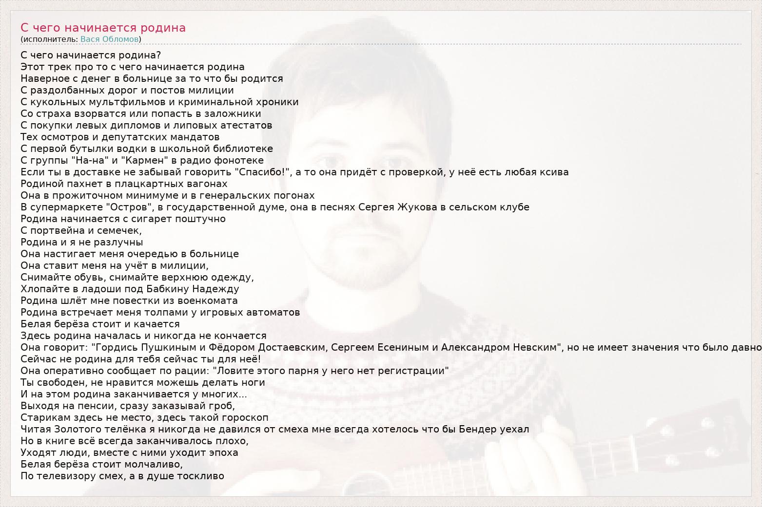 ГлавнаяИсполнителиВася ОбломовC чего начинается родина