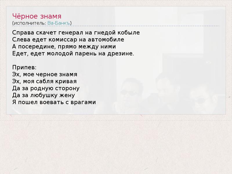 А как ты думаешь, о чем песня "Чёрное знамя" ?