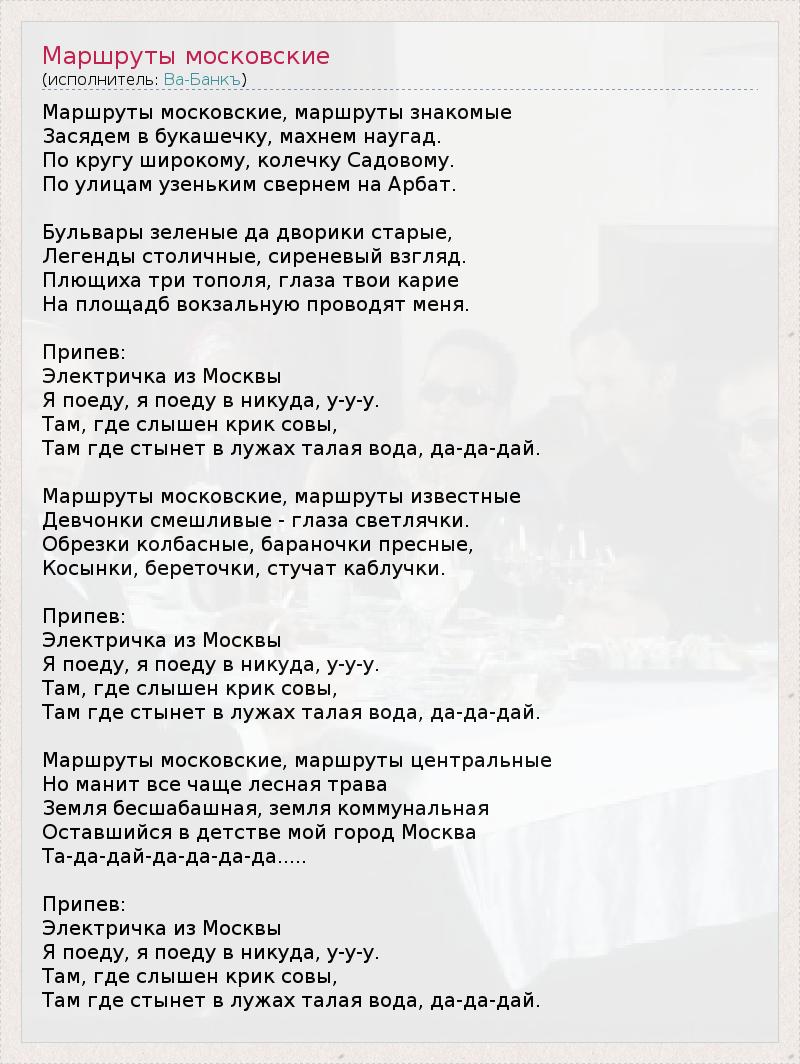 А как ты думаешь, о чем песня "Маршруты московские" ?