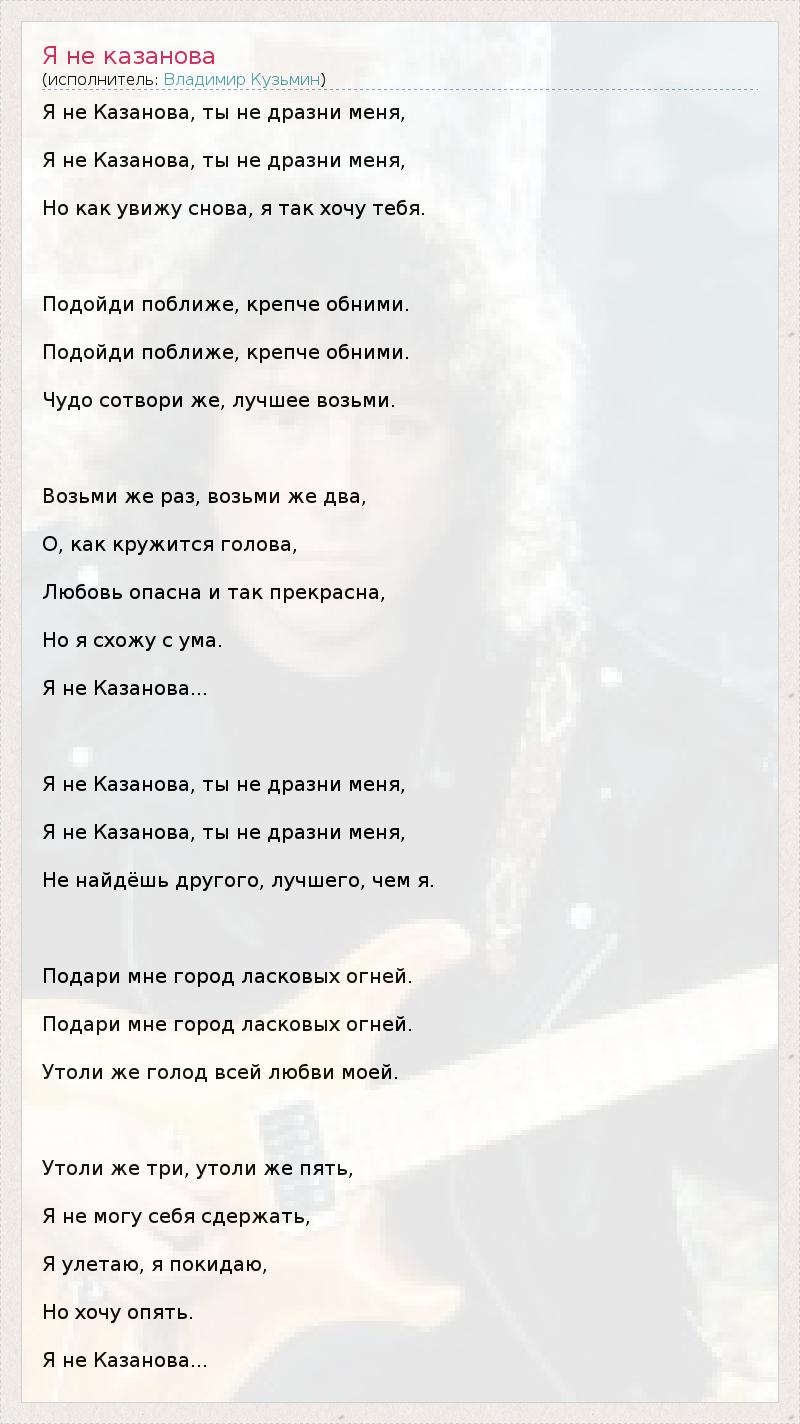Я не Казанова, ты не дразни меня,