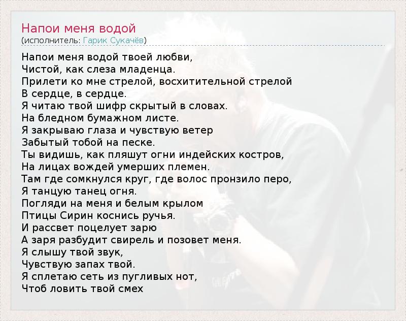 Напои меня водой твоей любви,