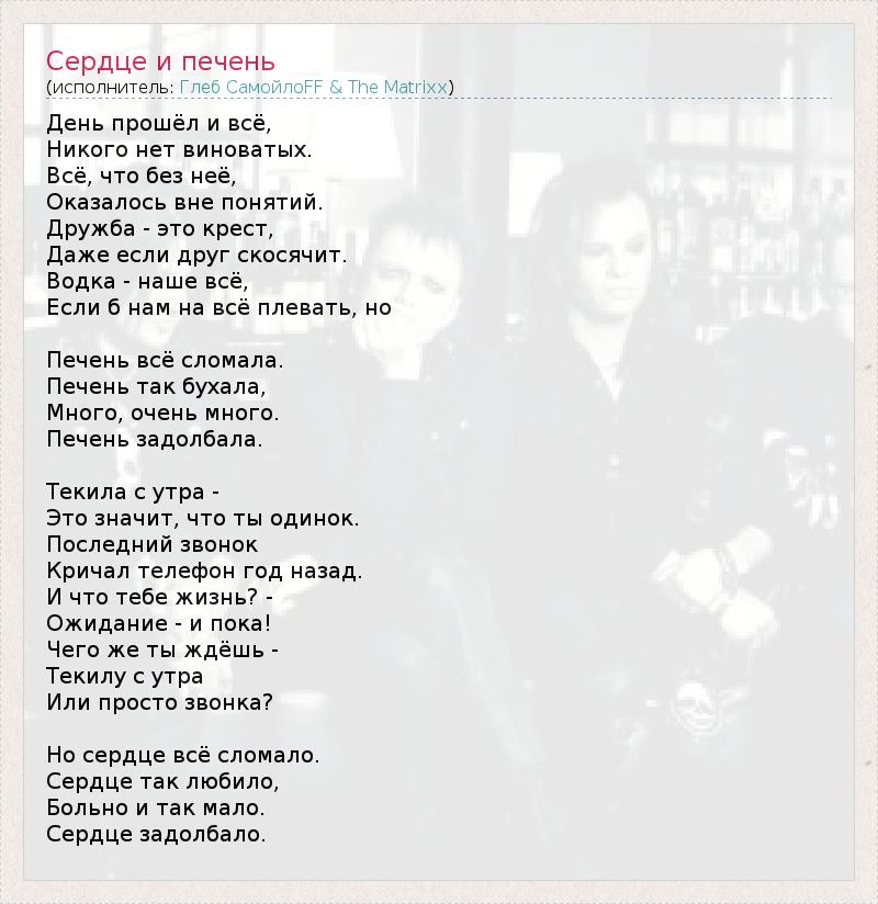 А как ты думаешь, о чем песня "Сердце и печень" ?