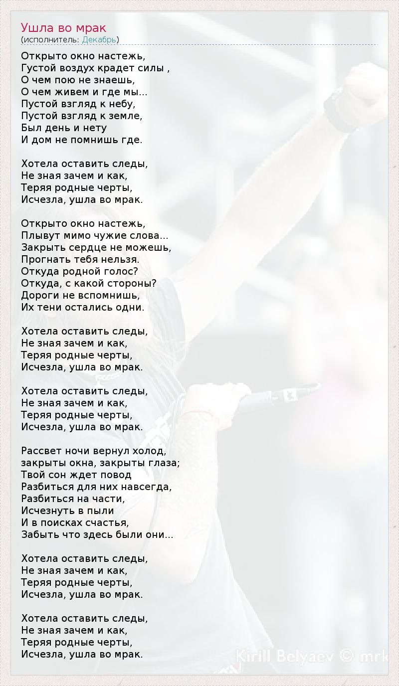 А как ты думаешь, о чем песня "Ушла во мрак" ?