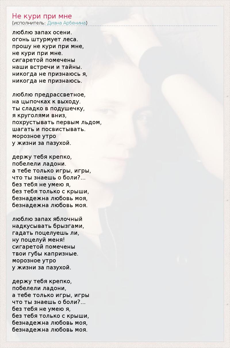 А как ты думаешь, о чем песня "Не кури при мне" ?