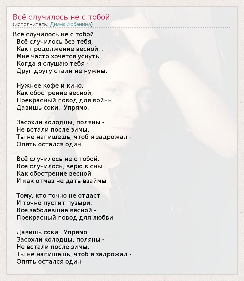 ГлавнаяИсполнителиДиана АрбенинаВсё случилось не с тобой