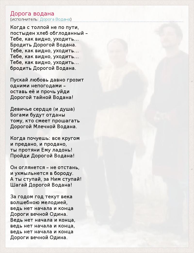 А как ты думаешь, о чем песня "Дорога водана" ?