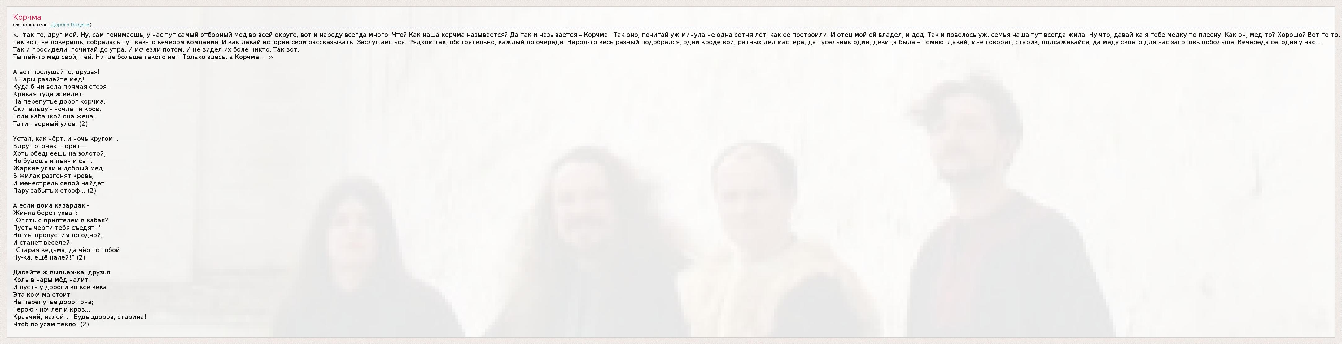 А как ты думаешь, о чем песня "Корчма" ?