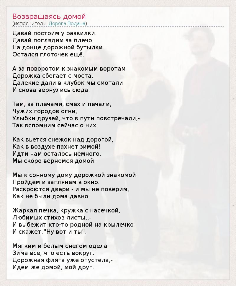 ГлавнаяИсполнителиДорога ВоданаВозвращаясь домой