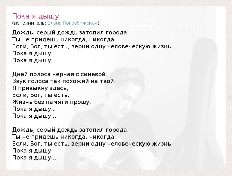 А как ты думаешь, о чем песня "Пока я дышу" ?