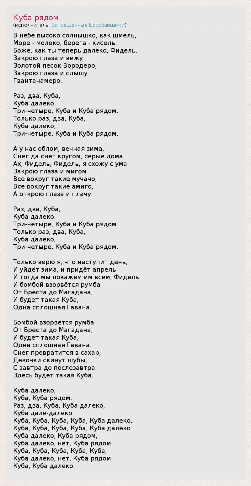 А как ты думаешь, о чем песня "Куба рядом" ?