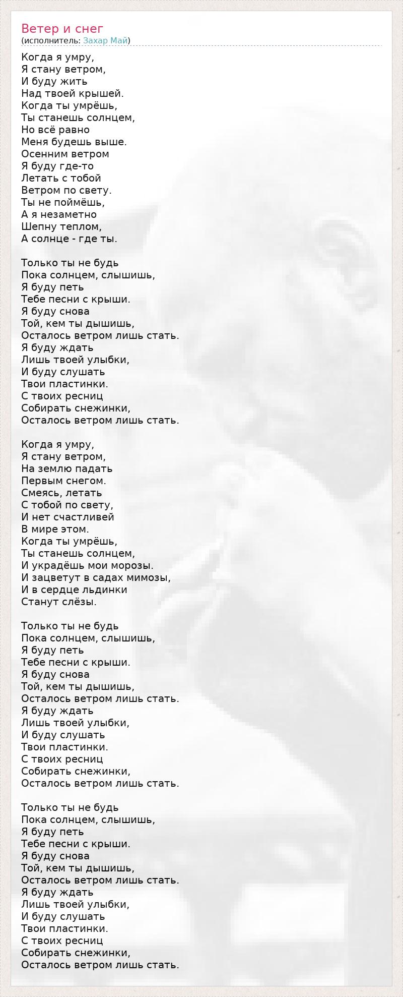 А как ты думаешь, о чем песня "Ветер и снег" ?