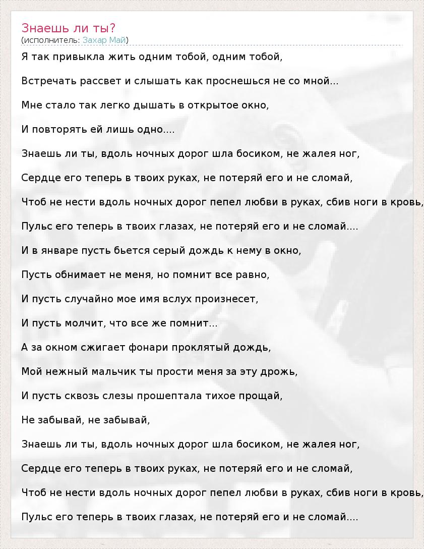 Знаешь ли ты, вдоль ночных дорог шла босиком, не жалея ног,