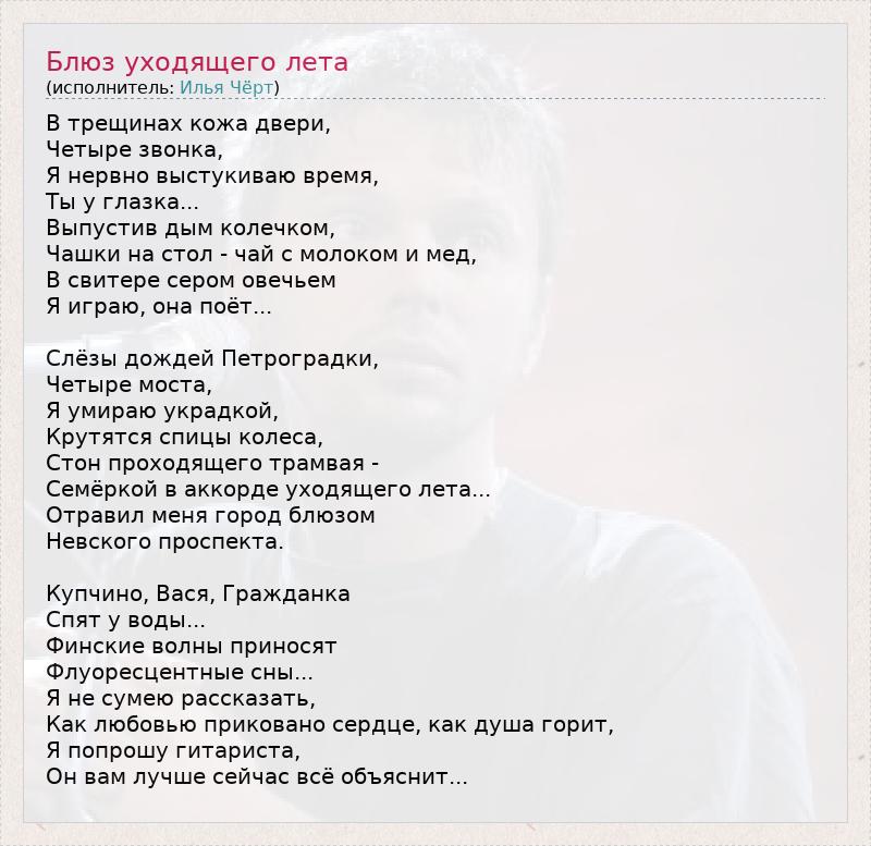 ГлавнаяИсполнителиИлья ЧёртБлюз уходящего лета