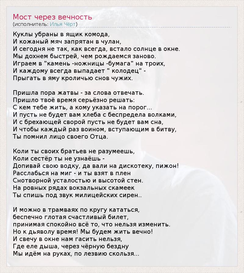 ГлавнаяИсполнителиИлья ЧёртМост через вечность