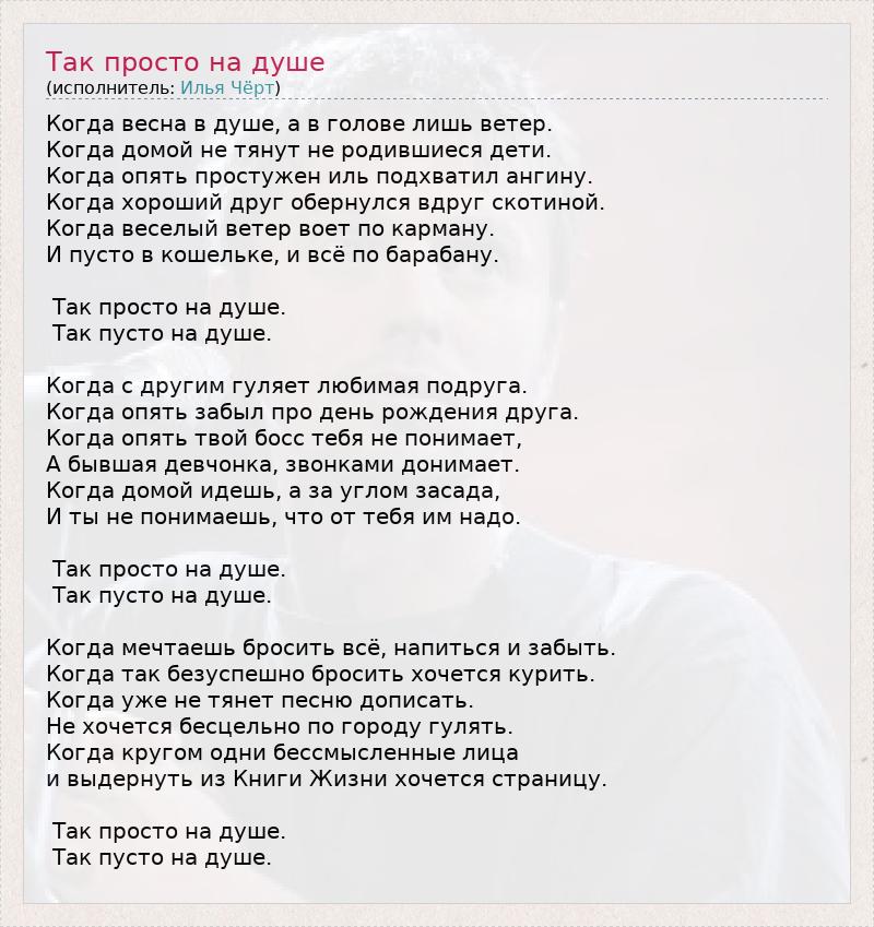 ГлавнаяИсполнителиИлья ЧёртТак просто на душе