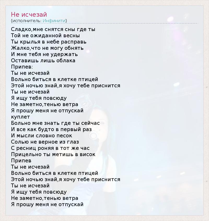 А как ты думаешь, о чем песня "Не исчезай" ?