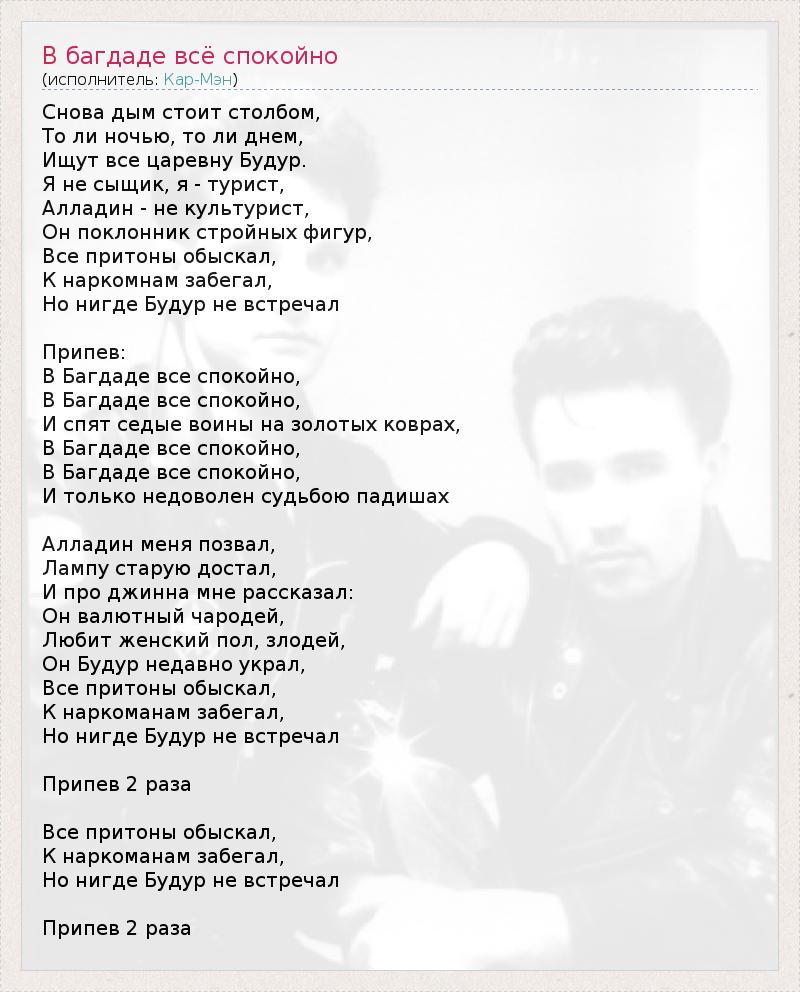 ГлавнаяИсполнителиКар-МэнВ багдаде всё спокойно
