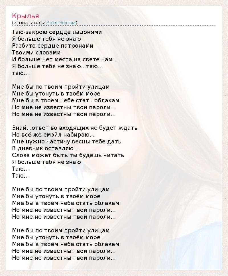 Это интересно:Рождение проекта «Катя Чехова» состоялось в 2005 году. В июне 2005 года проект стартовал ротацией треков «Я-робот» и «Крылья» в эфирах российских радиостанций.В декабре 2005 года вышел первый альбом Кати Чеховой «Я-робот», легальные продажи которого составили 250 000 CD-копий. Треки альбома на 1 год прочно заняли свои места в плейлистах клубных диджеев Москвы и России. За этот альбом проект... продолжение
