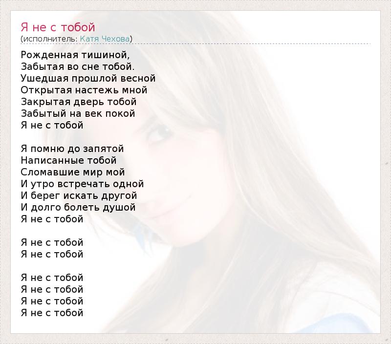 Это интересно:Рождение проекта «Катя Чехова» состоялось в 2005 году. В июне 2005 года проект стартовал ротацией треков «Я-робот» и «Крылья» в эфирах российских радиостанций.В декабре 2005 года вышел первый альбом Кати Чеховой «Я-робот», легальные продажи которого составили 250 000 CD-копий. Треки альбома на 1 год прочно заняли свои места в плейлистах клубных диджеев Москвы и России. За этот альбом проект... продолжение