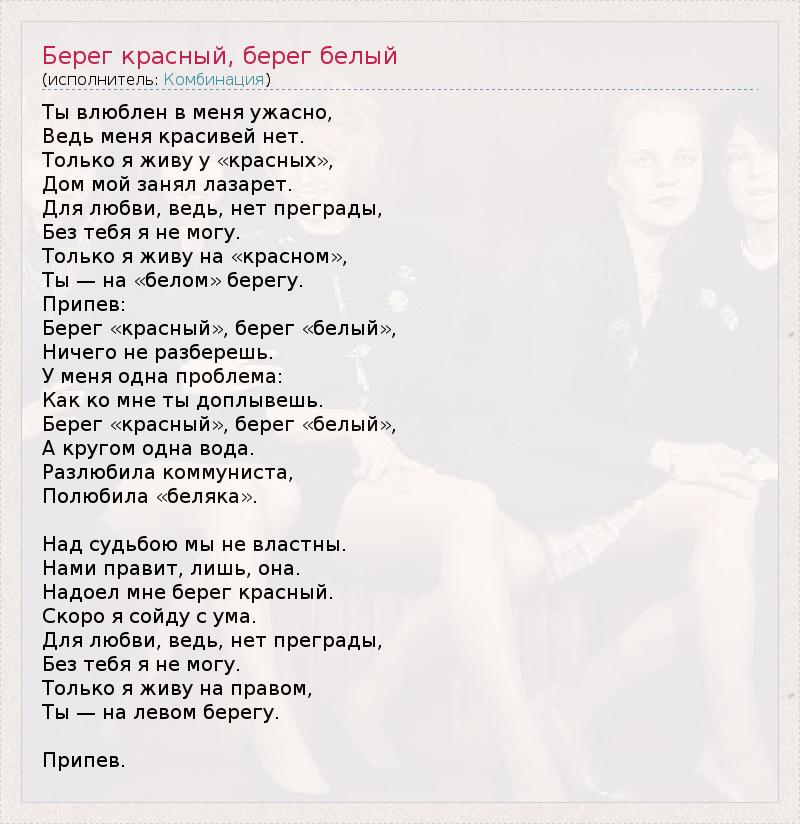 ГлавнаяИсполнителиКомбинацияБерег красный, берег белый