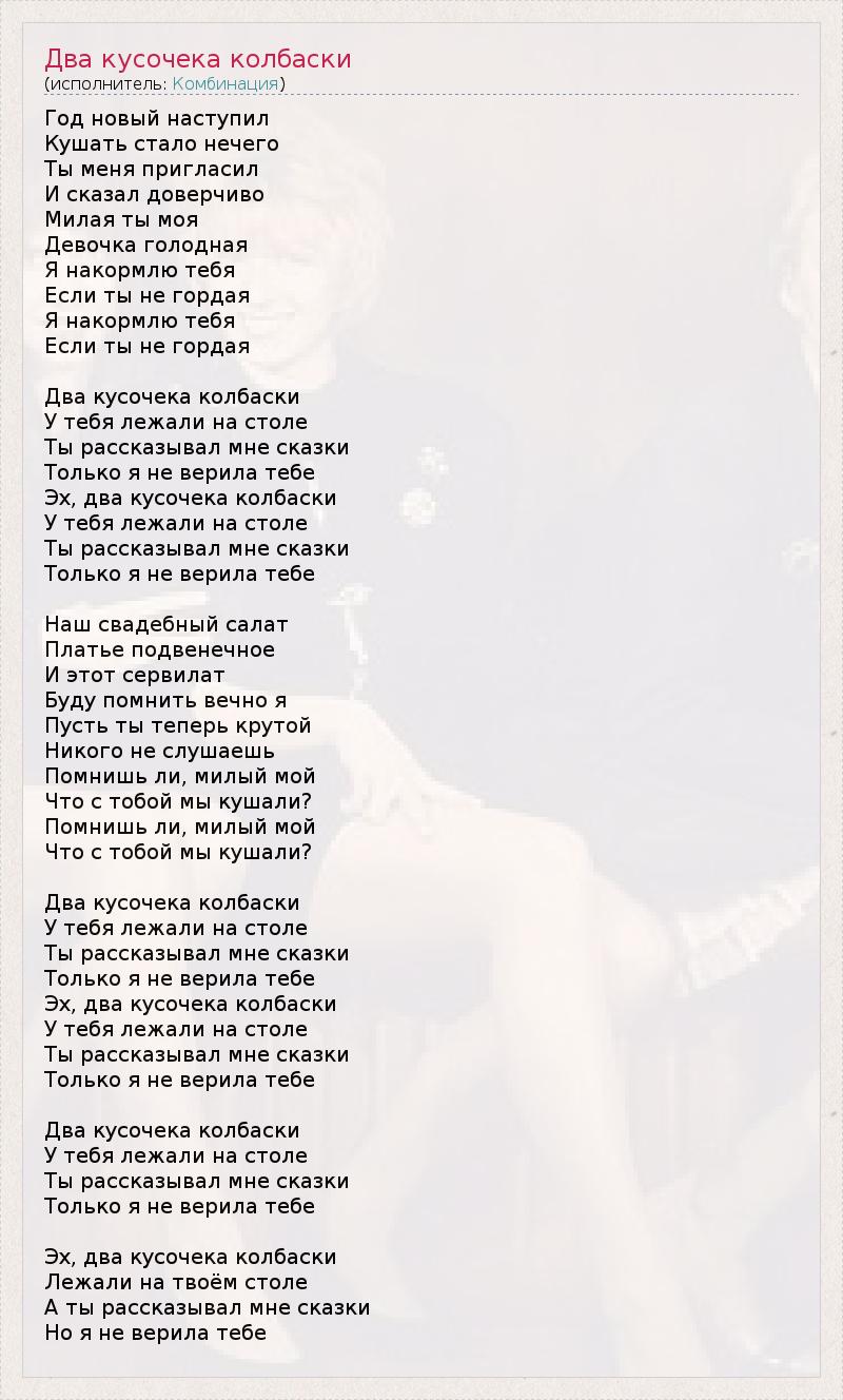 А как ты думаешь, о чем песня "Два кусочека колбаски" ?