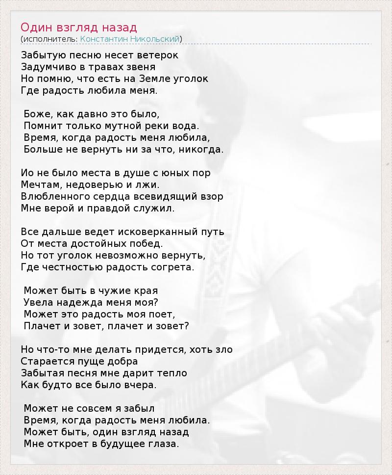 А как ты думаешь, о чем песня "Один взгляд назад" ?