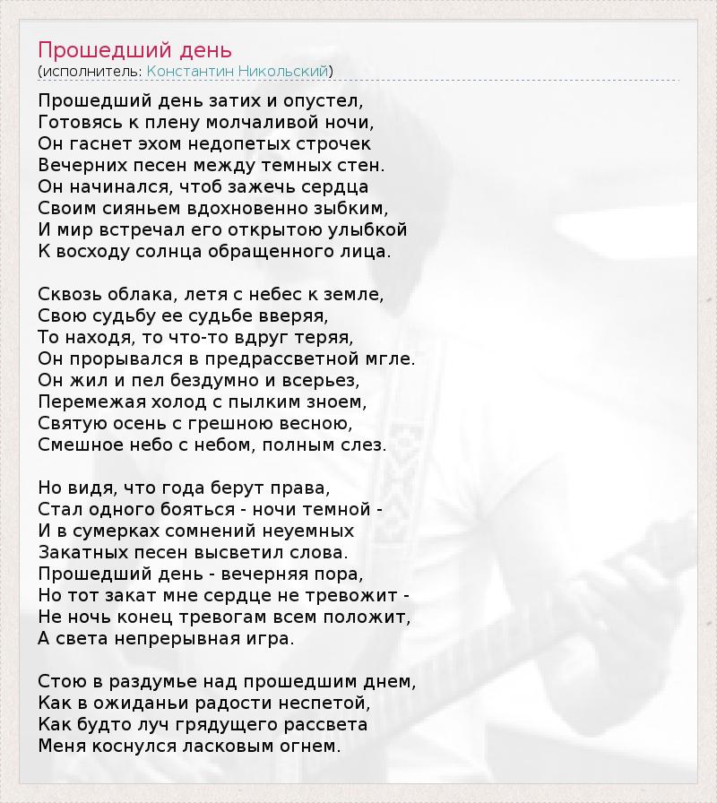 А как ты думаешь, о чем песня "Прошедший день" ?