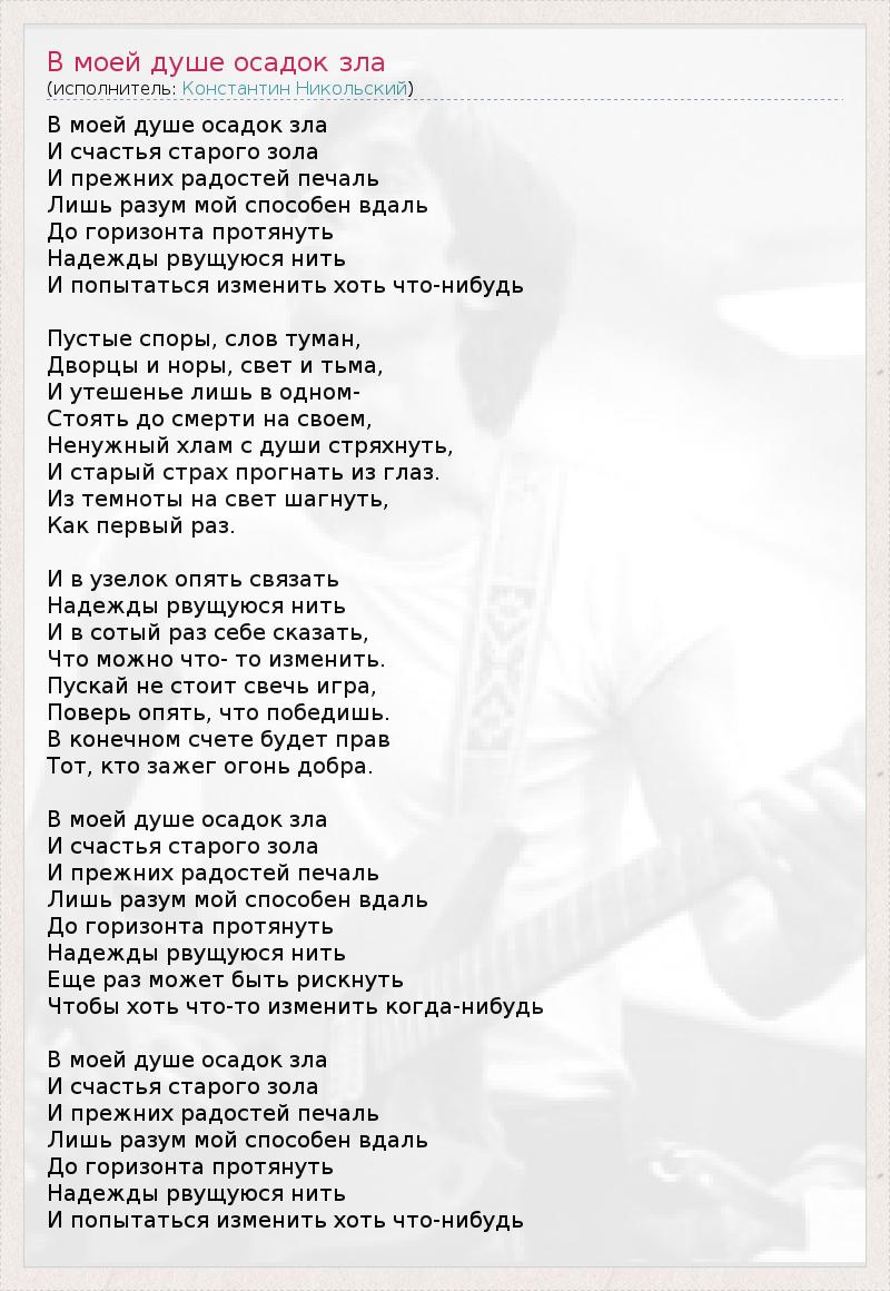 А как ты думаешь, о чем песня "В моей душе осадок зла" ?