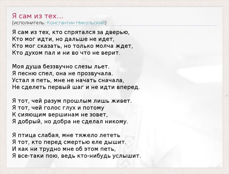 А как ты думаешь, о чем песня "Я сам из тех..." ?