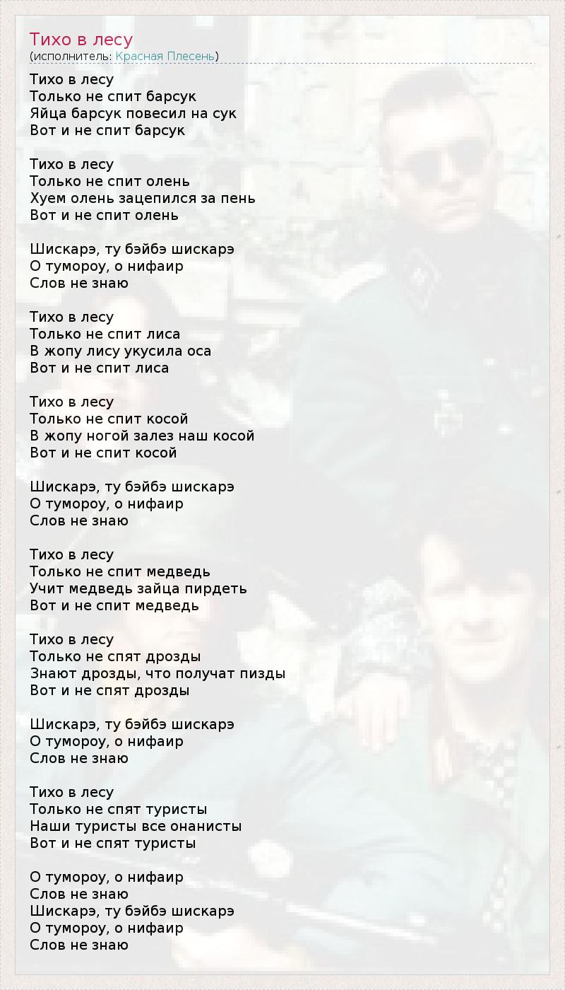 А как ты думаешь, о чем песня "Тихо в лесу" ?